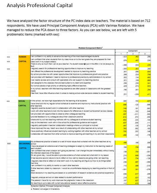 - Items are grouped to reflect the three key dimensions of professional capital: human, social, and decisional capital
