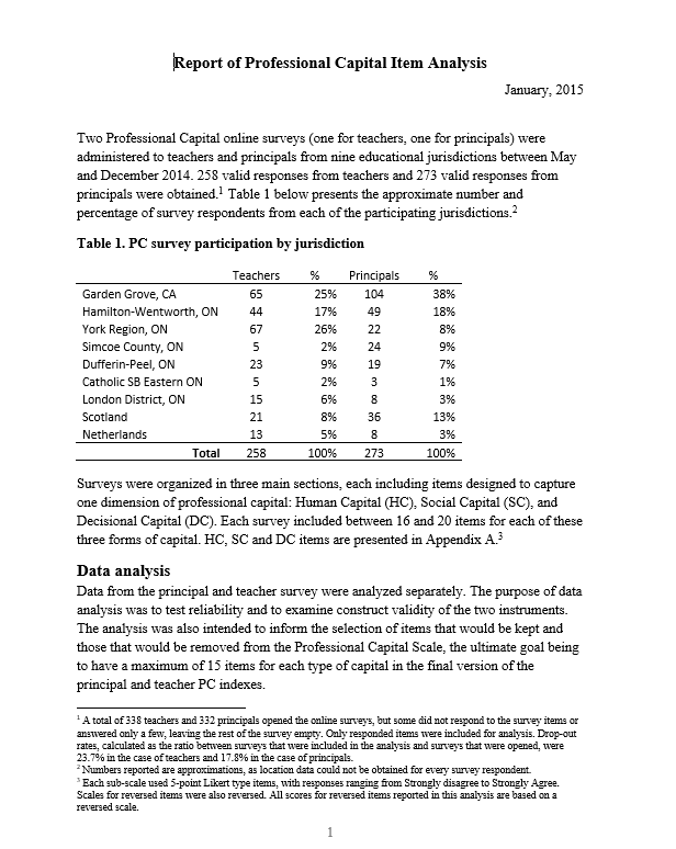 We kindly ask that you cite the Professional Capital Survey and the work of Michael Fullan Enterprises when using or referencing it.